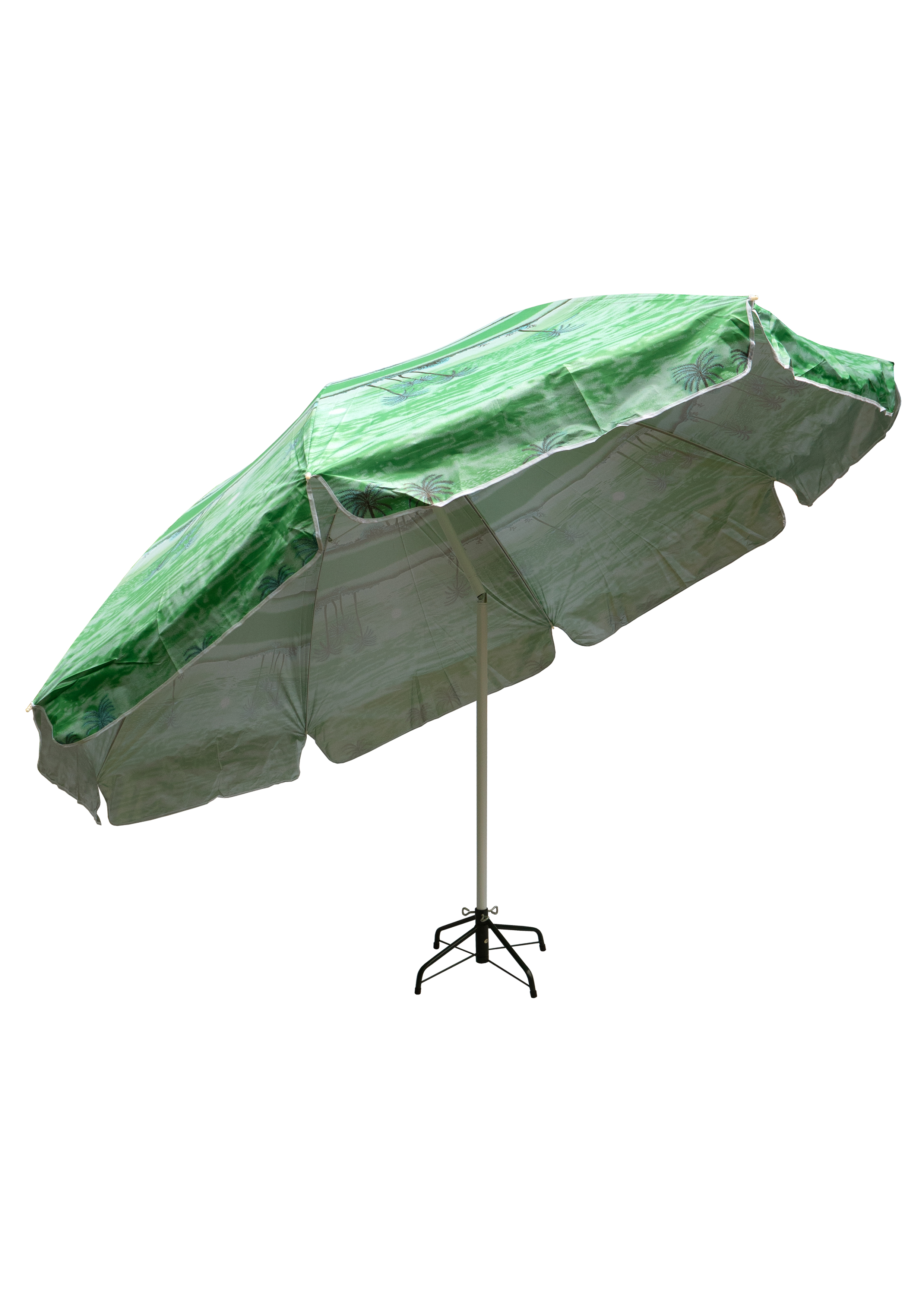 Зонт пляжный фольгированный (150 см в диаметре) 12шт/упак - надежное укрытие от солнечных лучей. Качественный металлический карскас с наклоном. Купол пляжного зонта выполнен из водонепроницаемого полиэстера, с внутренней стороны купол фольгирован, поэтому солнечные лучи отражаются. В раскрытом виде размер купола 1,5 метра. В ассортименте 4 расцветки
